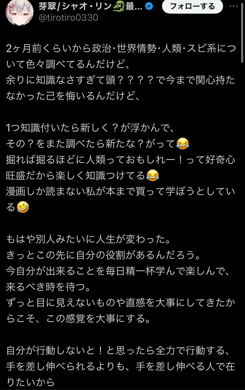 陰謀論に染まるタイプの人って元々の自分から変わりたくてその気持ちが常に高くあるから