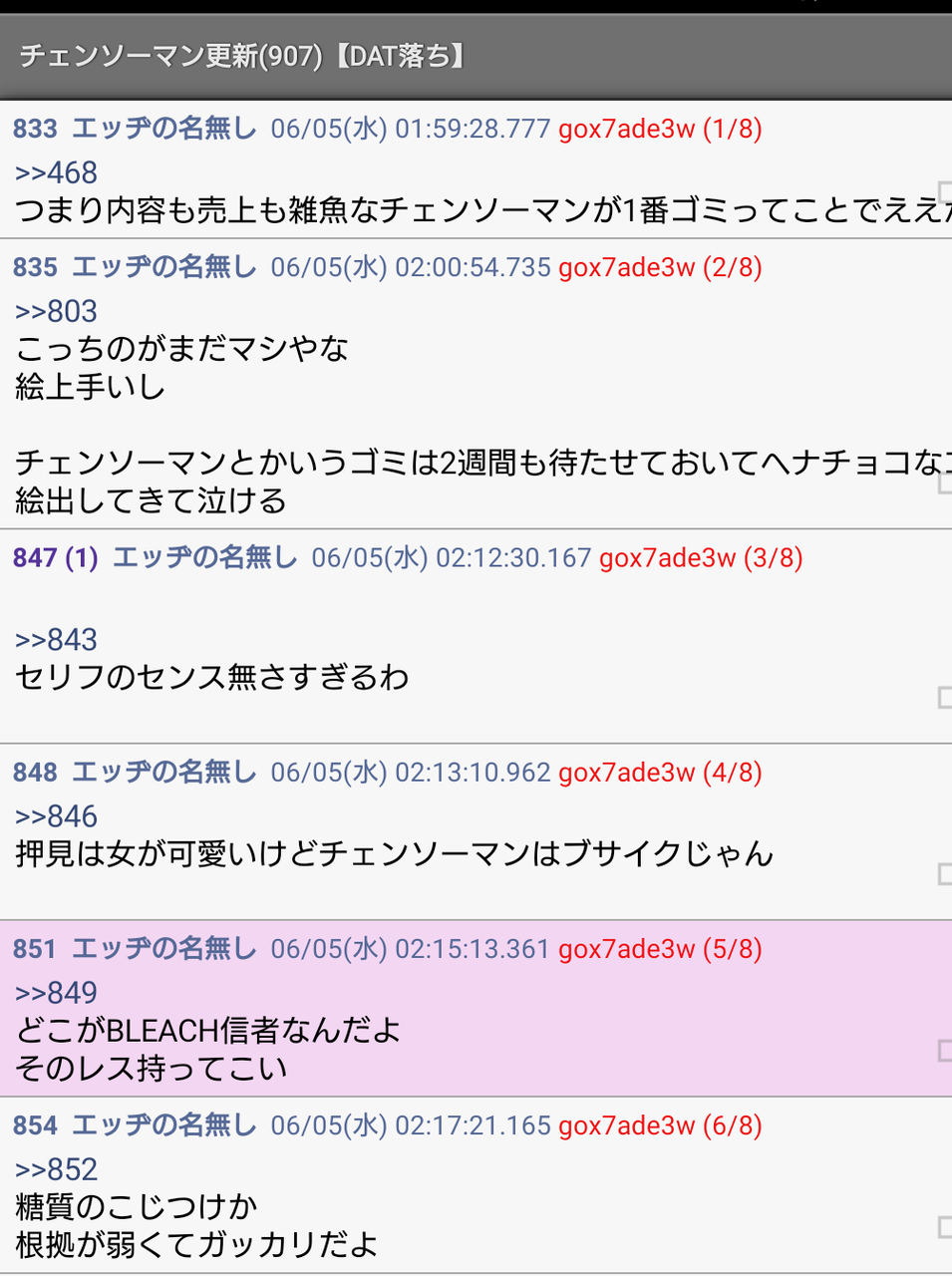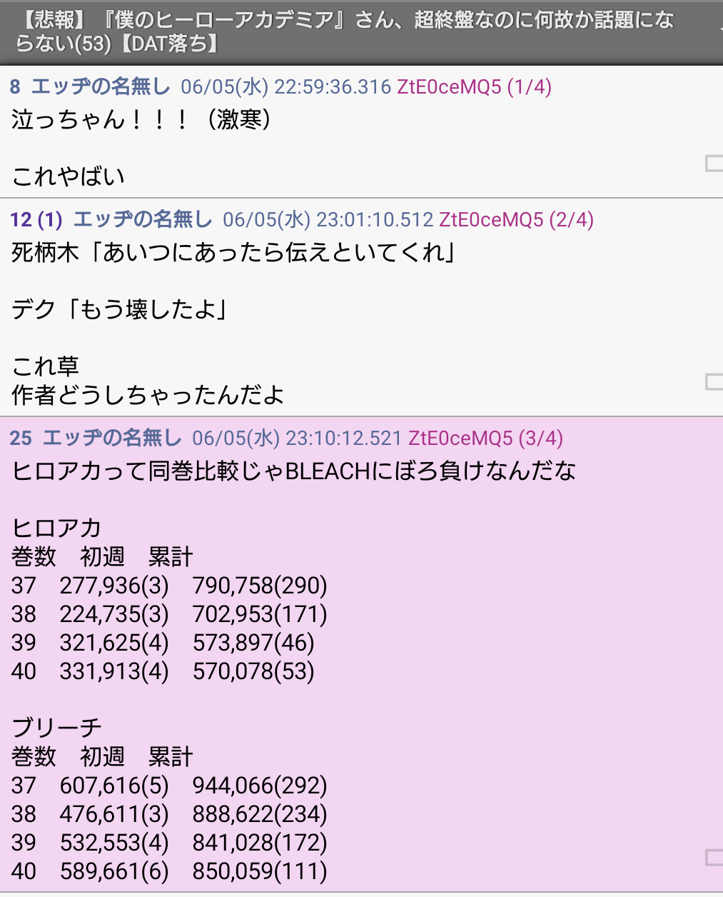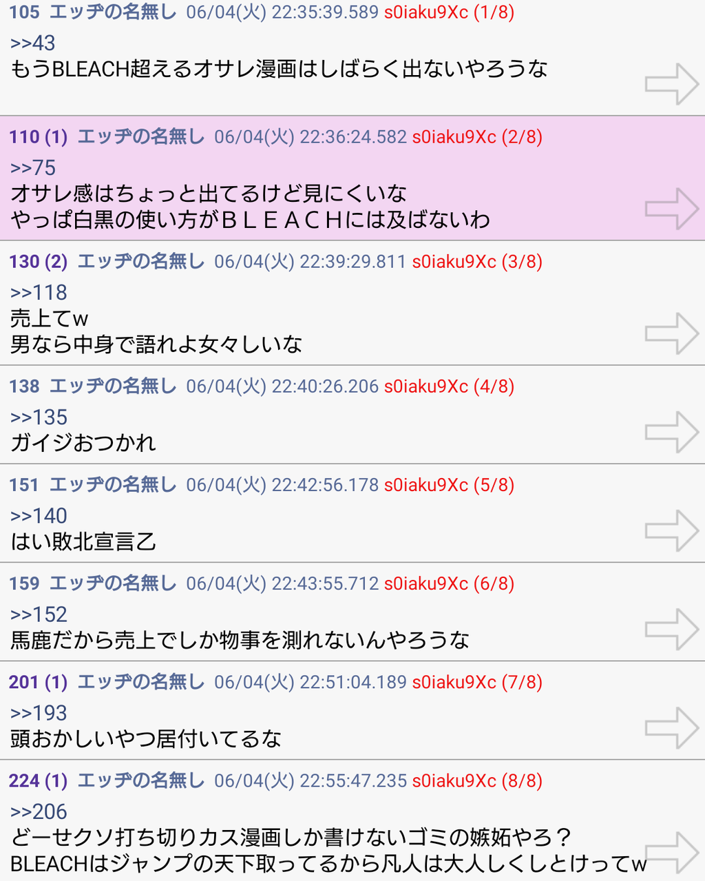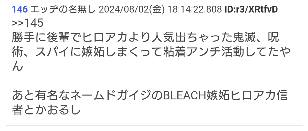 ・BLEACH信者指摘されていつものワンパ発狂