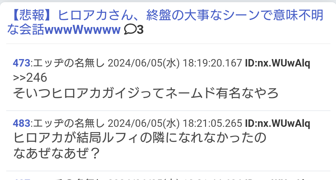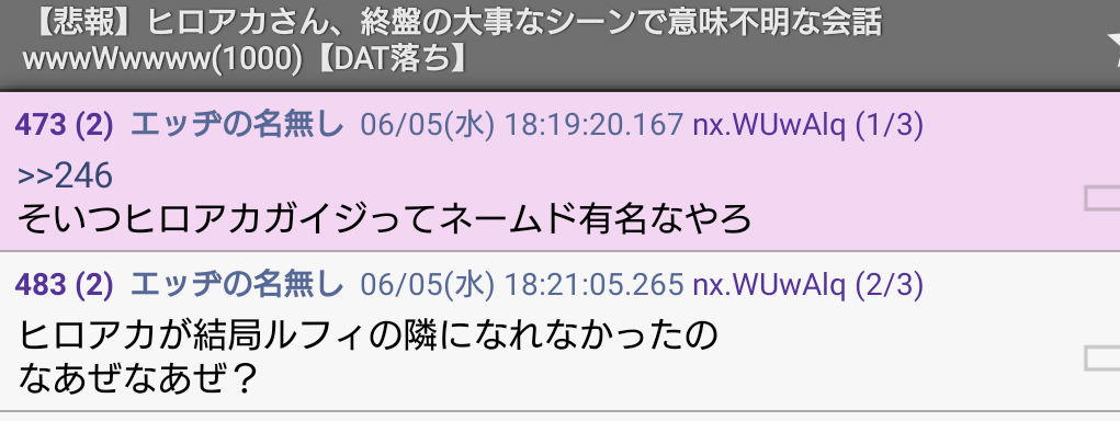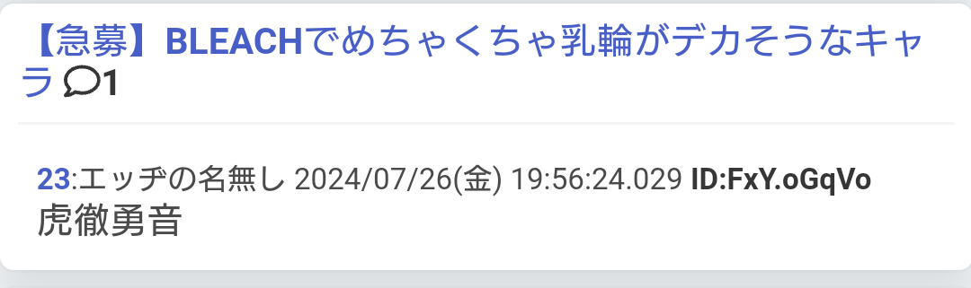 ブリーチ信者の*ネームドさん、ムクガイジスレに棚上げブチギレ