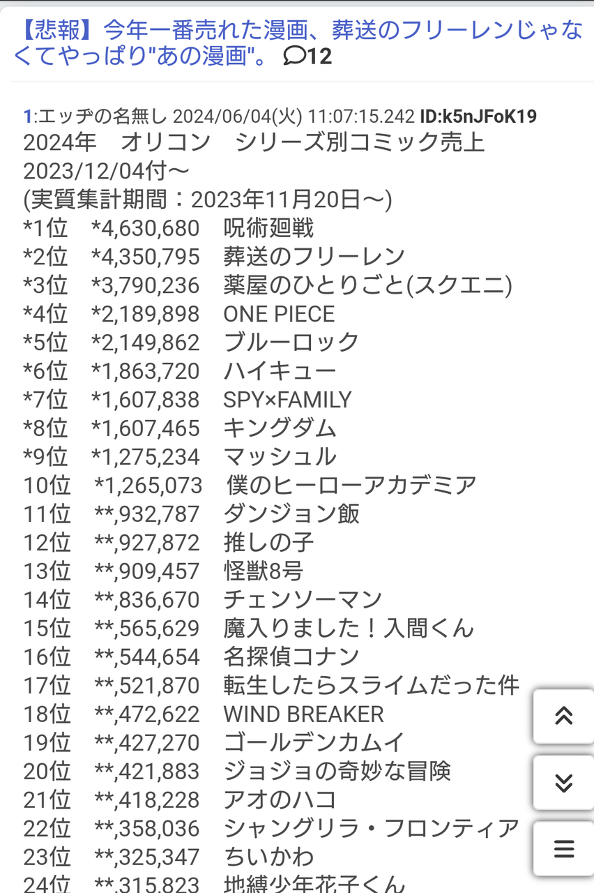【悲報】推しの子、全く覇権じゃなかったw