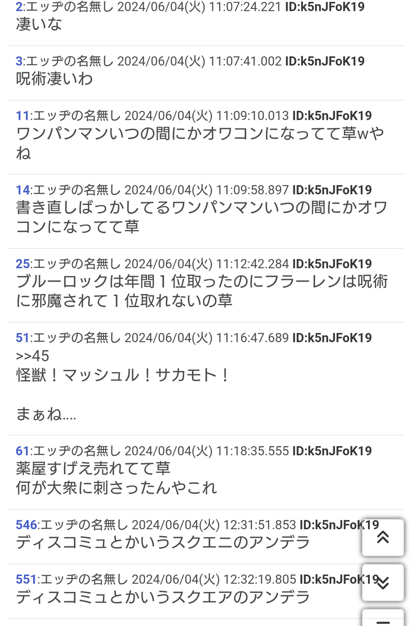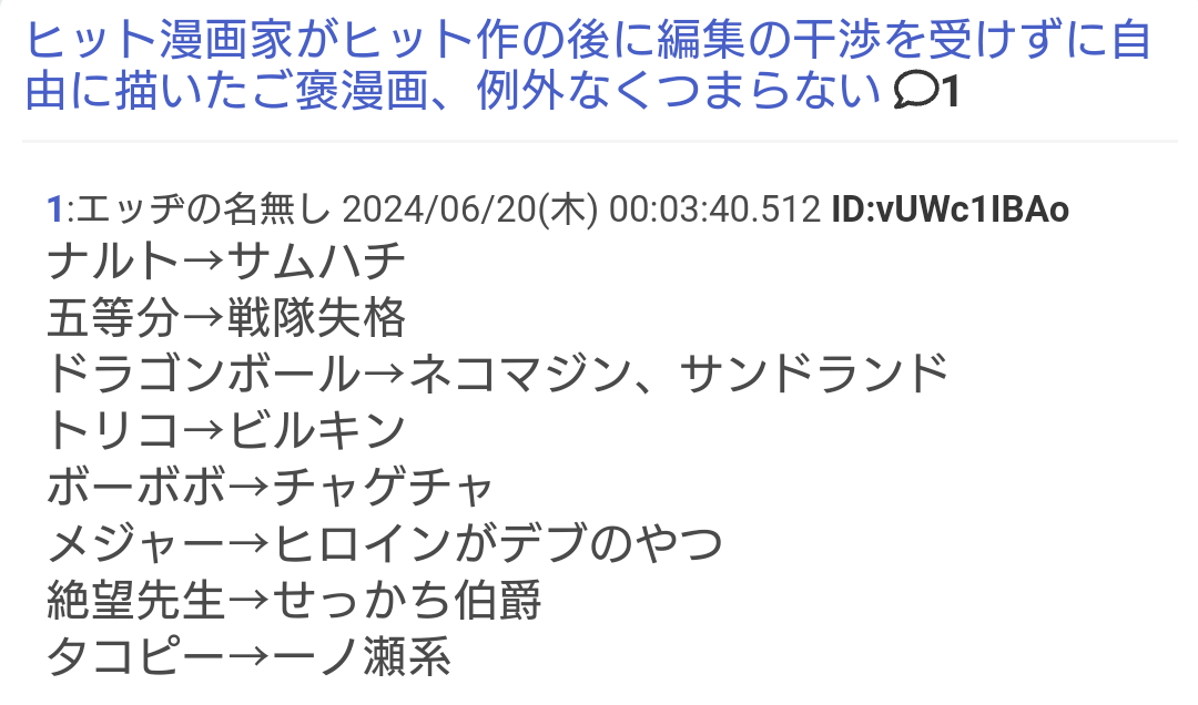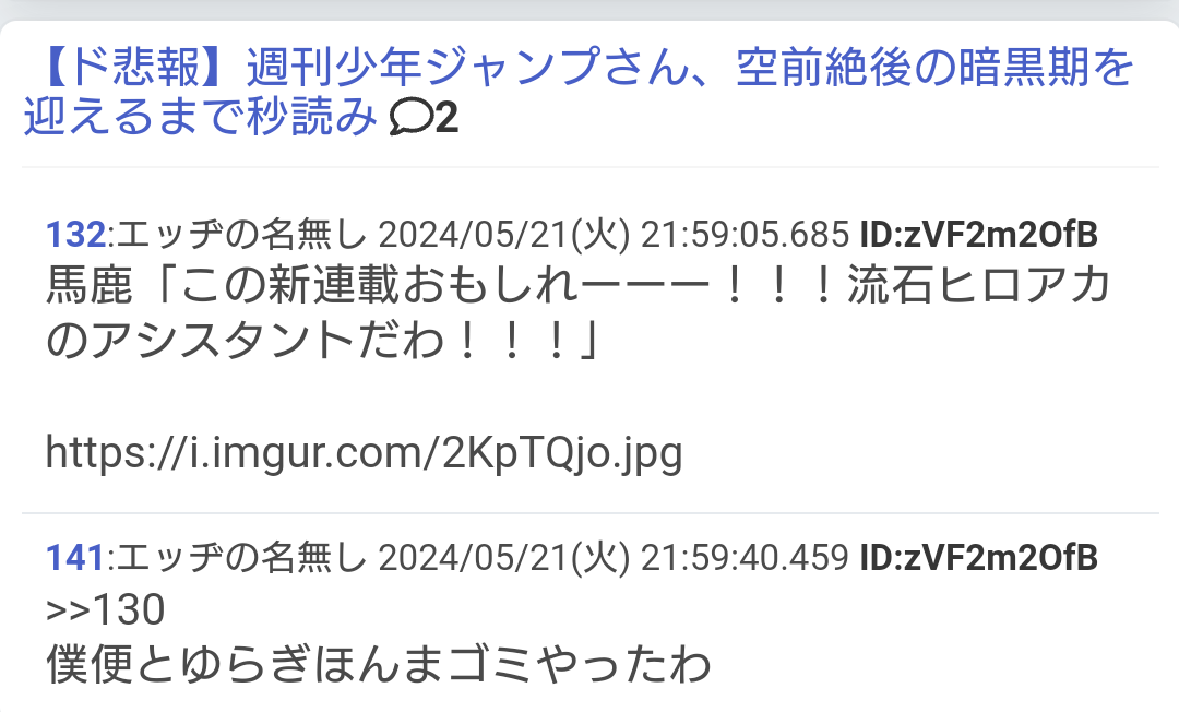 ・10作以上ジャンプ作品叩いてID真っ赤