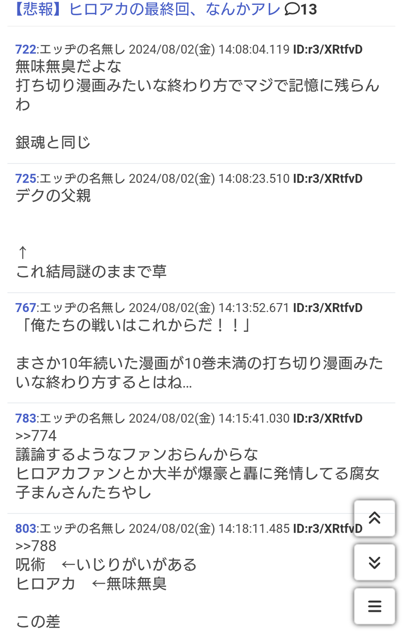 ワイはブリーチもヒロアカも極めて幼稚な漫画だと思っとるから読んでないわ