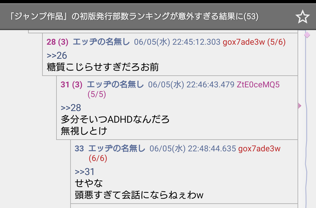 ジャンプ漫画叩きIDでも任天堂叩きIDでも同じ事やってるの頭悪過ぎて草