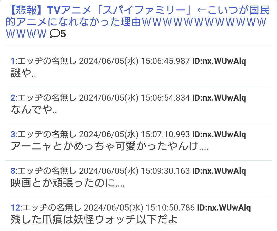 「‥‥」二点リーダでスパイファミリー叩きスレ立て