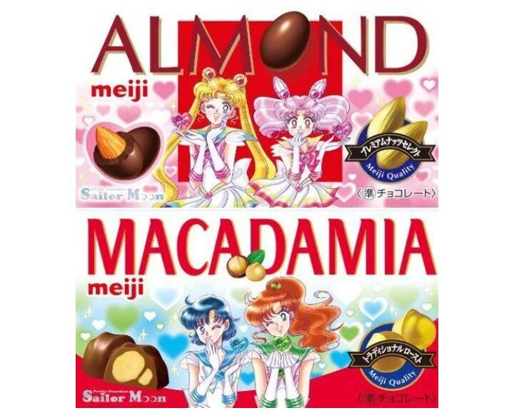 明治は「美少女戦士セーラームーン」とコラボした限定パッケージの「アーモンドチョコレート」「マカダミアチョコレート」「明治ミルクチョコレートビッグパック」を1月20日から発売する。