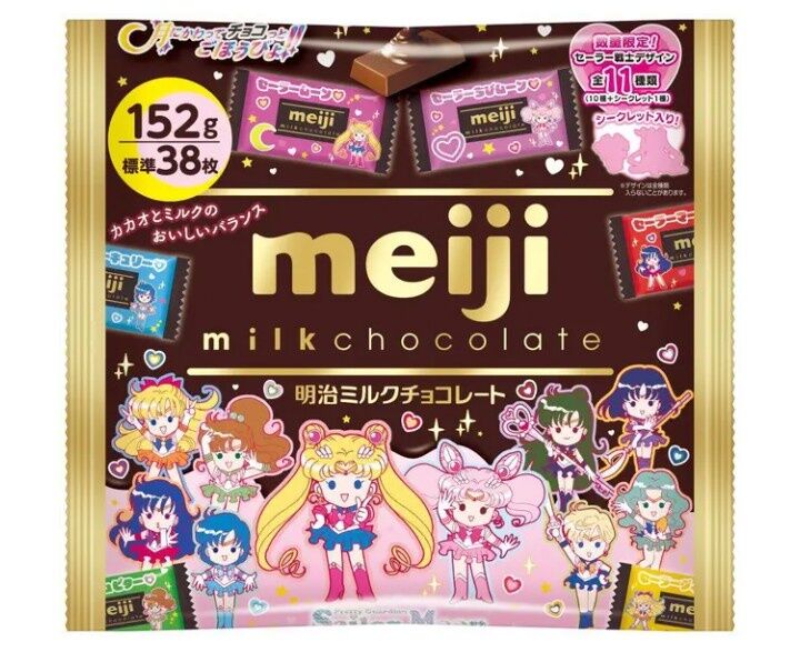 「明治ミルクチョコレートビッグパック」には、セーラー10戦士をデザイン。各戦士がデザインされている個包装は全10種とシークレット1種を用意している。